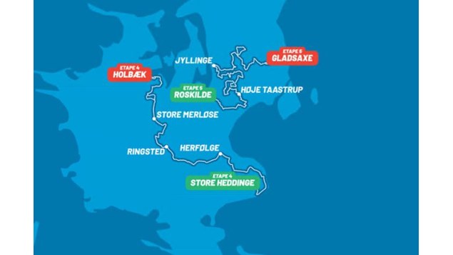 Søndag fortsætter cykelløbet fra Roskilde, hvor starten går klokken 11.40 fra Stændertorvet. Ruten fortsætter over Jyllinge og Veksø og videre til målstregen i Gladsaxe.